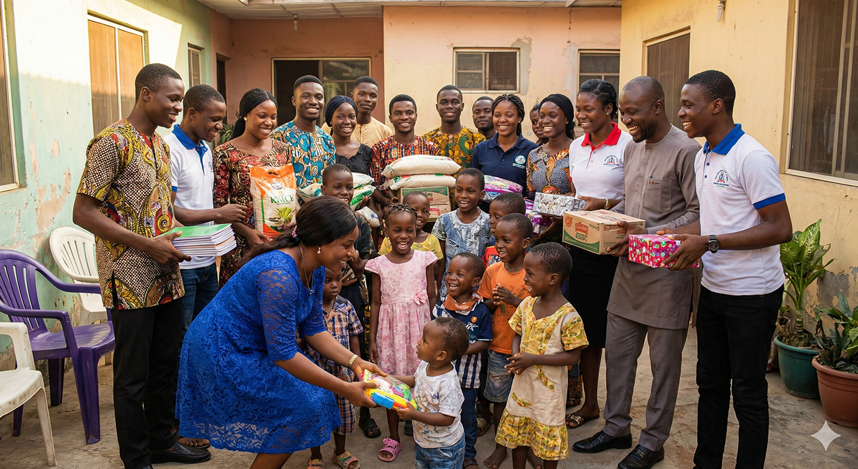 Our outreach team visiting motherless homes sharing food,